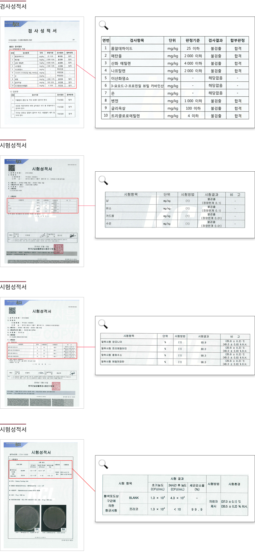 검사성적서 및 인증서